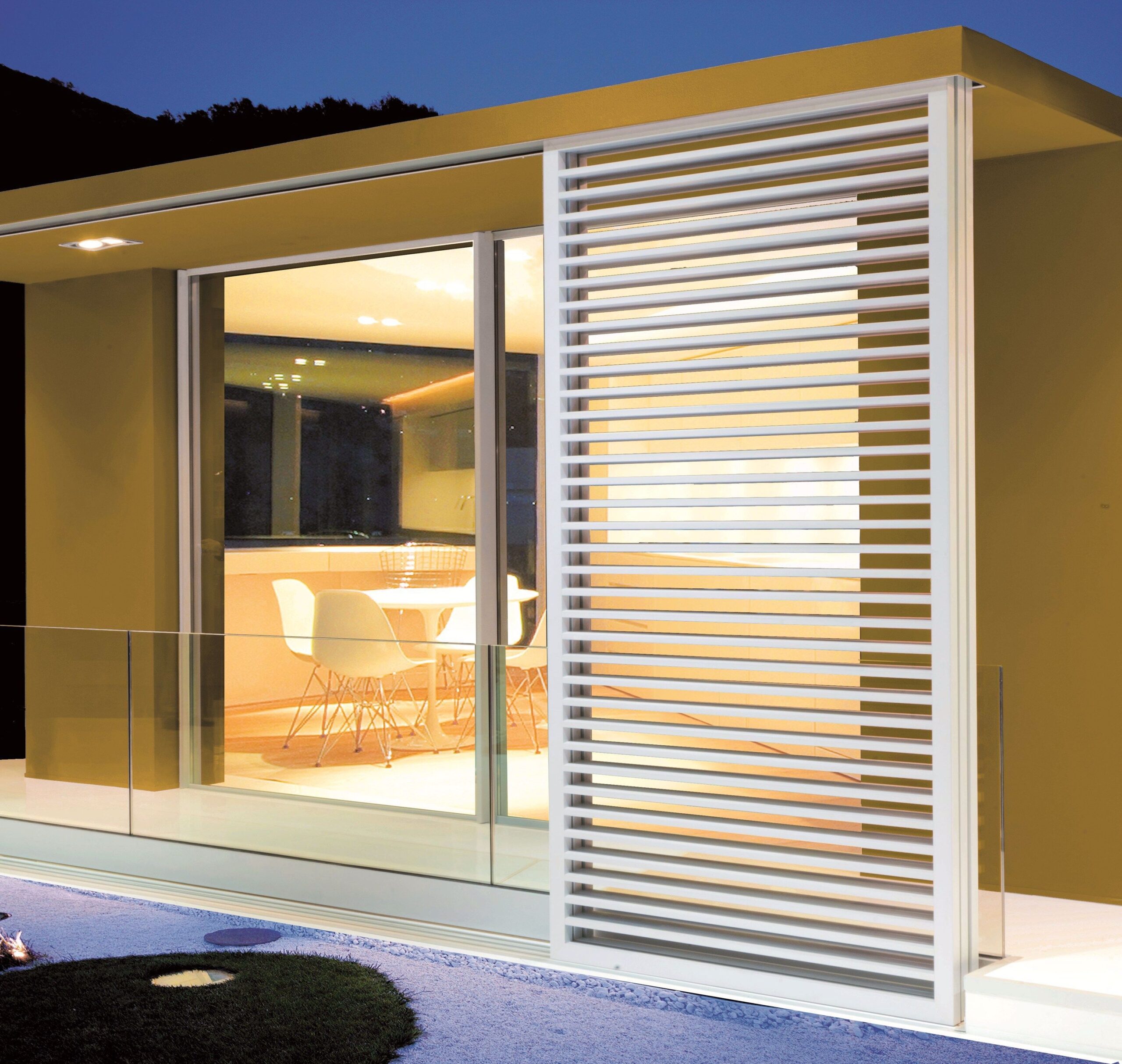 Moderner, variabler Sonnenschutz mit verstellbaren Lamellen – für perfekte Lichtregulierung und stilvolle Fassadenoptik.